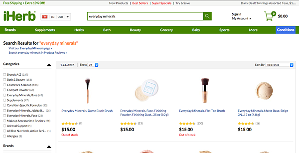 隨意搜尋自己喜歡的產品或品牌,如我這次找的就是礦物彩妝品牌「Everday Minerals」