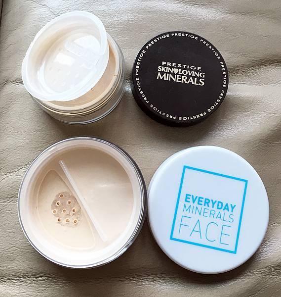 看包裝及粉盒的設計,其實 Prestige Cosmetics 是比較優勝,因為它的盒子較精美,而且內有一個非常貼心的防漏設計,較 Everyday Minerals 的簡單設計較細心。